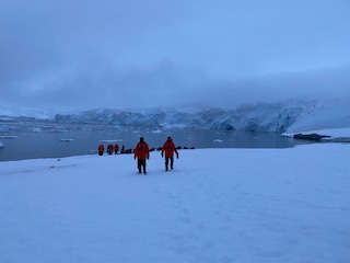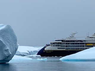 We returned to the ship for dinner. The food is delicious and portions are actually reasonable. After dinner, Nancy and I went up to the “ice lounge” with our dinner friends and sat at the stern of the boat, wrapped in wool blankets, sipping after dinner drinks and enjoying the fire pit. A great ending to another adventure day.