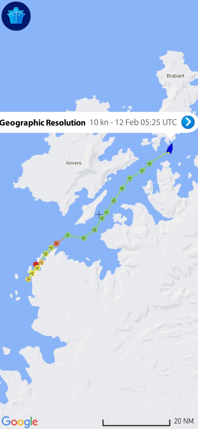 AIS Update on 12 February 2022 Sent from my MarineTraffic app for iOS Resolution AIS Satellite Track 12 February 2022 Share this: Share on X (Opens in new window) X Share on Facebook (Opens in new window) Facebook Like Loading... Related
