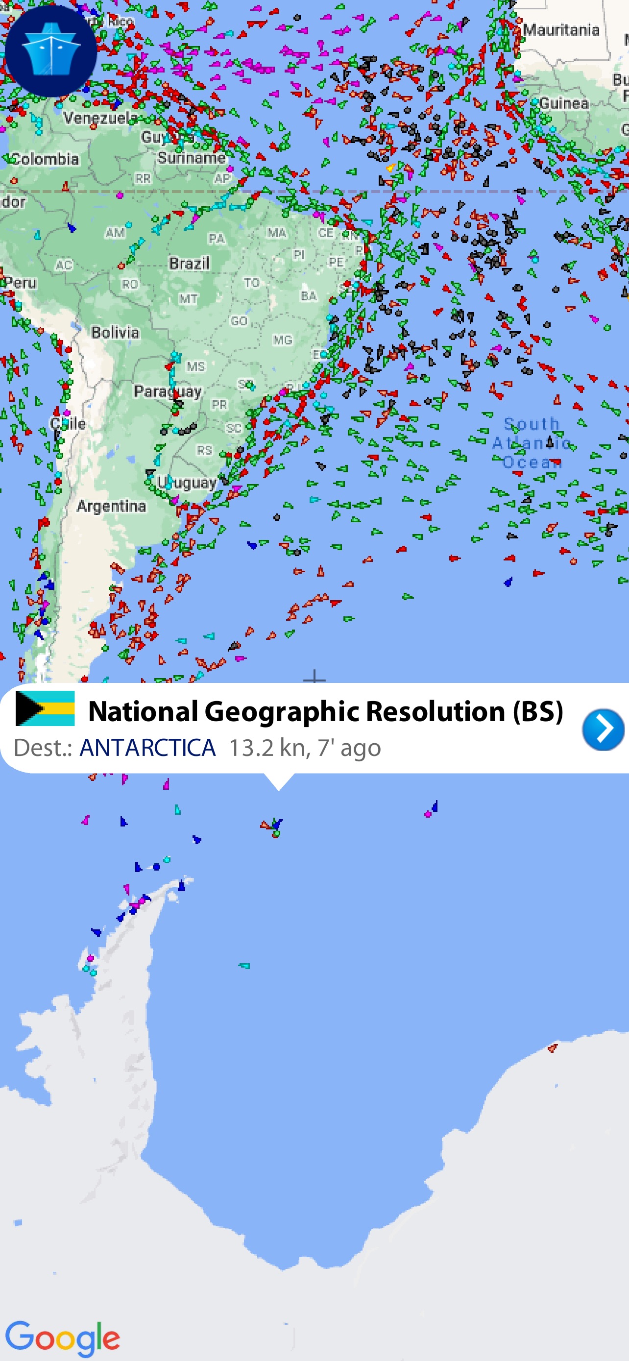 15 February 2022 – Tuesday – RESOLUTION at Sea. Sent from my MarineTraffic app for iOS RESOLUTION Enroute to South Orkney and South Georgia Islands 15 Feb 2022 Share this: Click to share on X (Opens in new window) X Click to share on Facebook (Opens in new window) Facebook Like Loading... Related