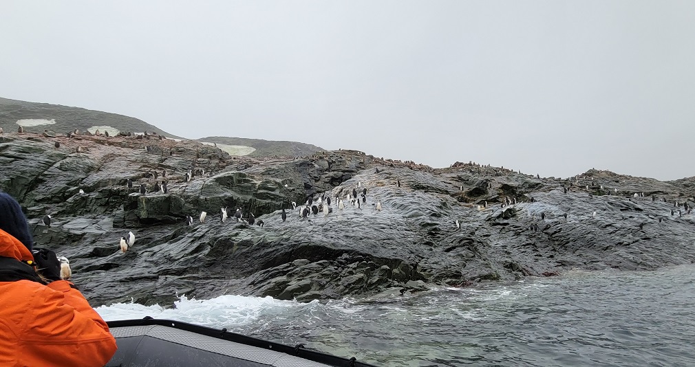 Our RIB driver/ naturalist took us close to the cliffs where we saw our first chinstrap penguins. The location has a huge colony but summer is ending here so the population didn’t seem too big.