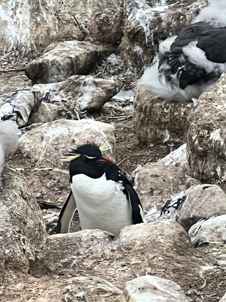 New Island is in the western Falklands. It is owned by a preservation trust. In the morning we hiked through a grassy path to visit two colonies that live along cliffs at one edge of the island. There were some adorable rockhopper penguins interspersed in the albatross colony on one cliff side. Another cliff had a large colony of rock hoppers that were more difficult to visit.