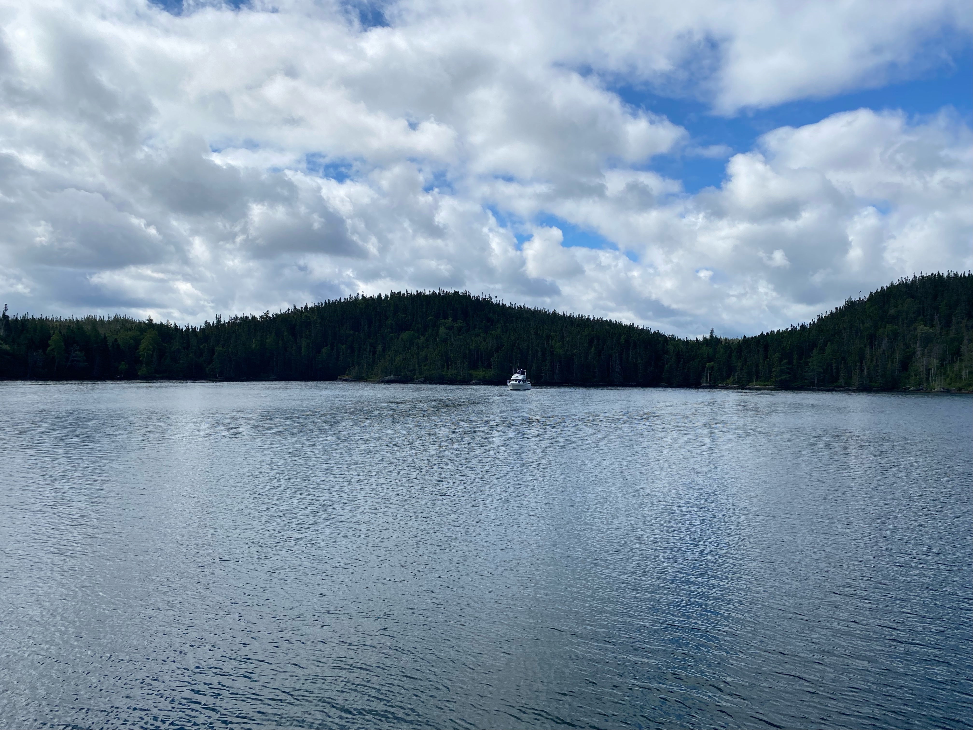 The crossing of Bonavista Bay turned into a choppy bucking ride even with our stabilizers. We were cruising along with Moya, the commodore, nearby. Her smaller boat was rolling quite a bit. The ride was tough. She called us to say she would tuck back into the Bonavista wharf to wait for better weather and seas the next day. We quickly agreed to do the same. Shortly thereafter we were radioed by our friends on Visions of Johanna saying they would join us in Bonavista. It was the right decision for all.