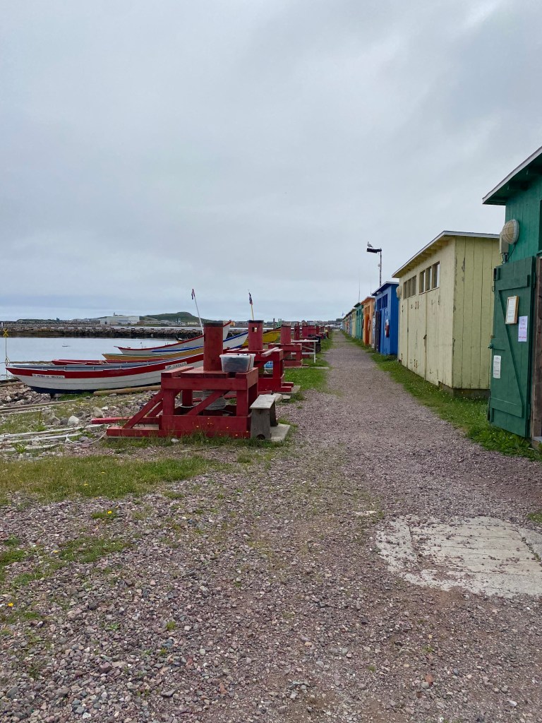Our afternoon included a private tour of the island with a few friends from other boats. The island if St Pierre is about the same size as Bermuda so we saw everything in an hour. The fishing shacks with dories(small flat bottomed boats) are interesting because you can see that they are brought on land by a manual windlass. Hard work! We then returned to a dock cocktail party with friends and others on the dock. We went to dinner at Le Select which we were told was one of the best places in St Pierre.