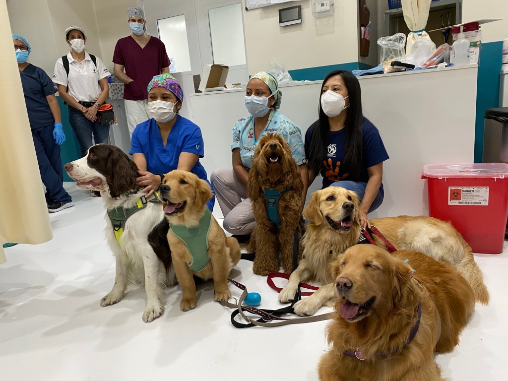 As we waited for second cases to be ready, there was a commotion in the pre-op area because we were being visited by a group of service dogs. They were great fun for the very nervous patients and cute for staff to see too. A trainer put a very obedient puppy on a bed with a patient and allowed her to give treats as he commanded the dog.