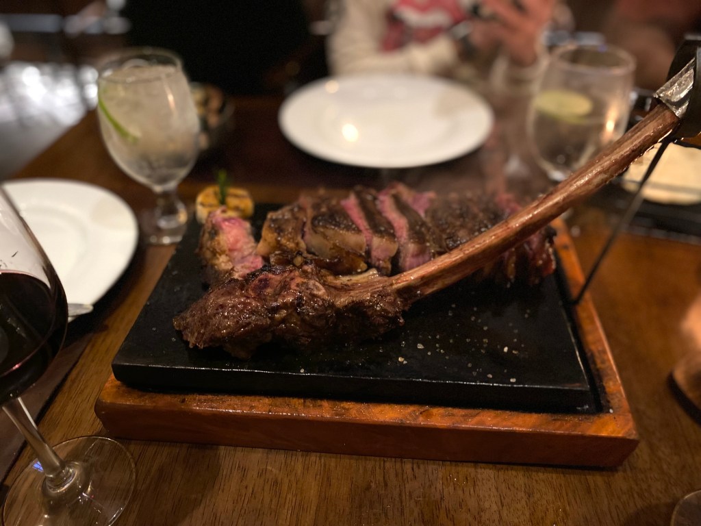 The whole team went out for dinner to a wonderful steak restaurant. Our table of 6 ordered a tomahawk steak that is supposed to be for 4. So we added a small strip steak. We had a roasted cauliflower and a plate of chorizo. We had plenty of food. Since Friday is a short day, there was lots of drinking too. A fun evening for all of us to unwind.