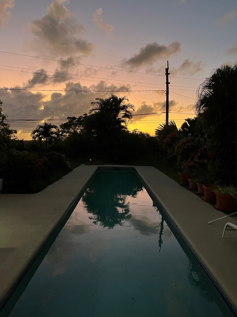 The drive back was easy. Sunset looking out over the pool and the ridge beyond was spectacular. One more day…