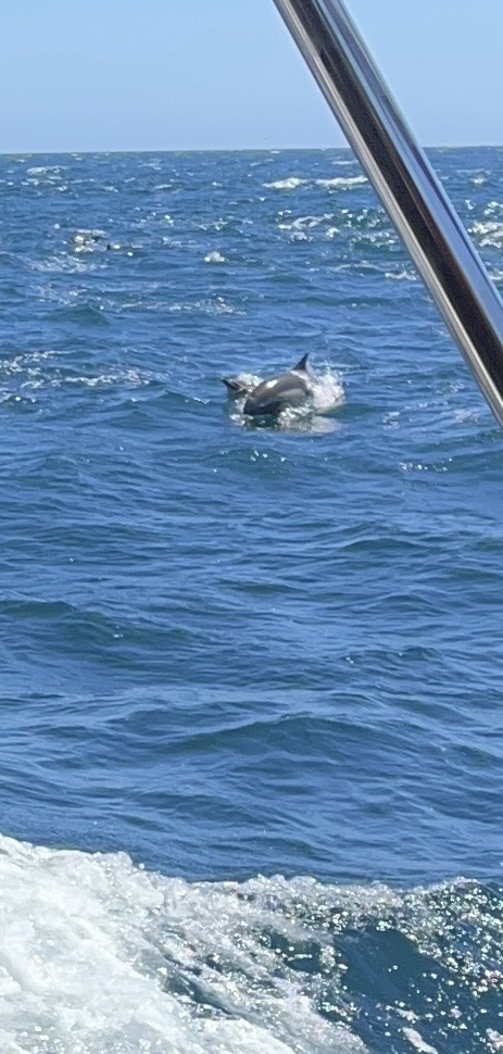 It’s another beautiful sunny day. We maintained a boat speed of 7 knots or better. After lunch, we were surrounded by an enormous pod of dolphins who swam along with us for a while. It was great entertainment.