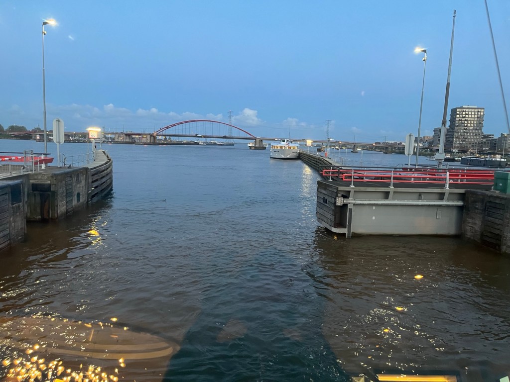 We returned to the ship for dinner. It was our turn to eat at the upscale restaurant in a private dining room in the stern of the boat. As dessert was served, we entered the first of many locks and watched the gates close behind us. These locks are quite wide so that other huge ships are in the lock with us. There are mostly barges carrying all sorts of things. We have a whole morning of locks ahead of us tomorrow too.