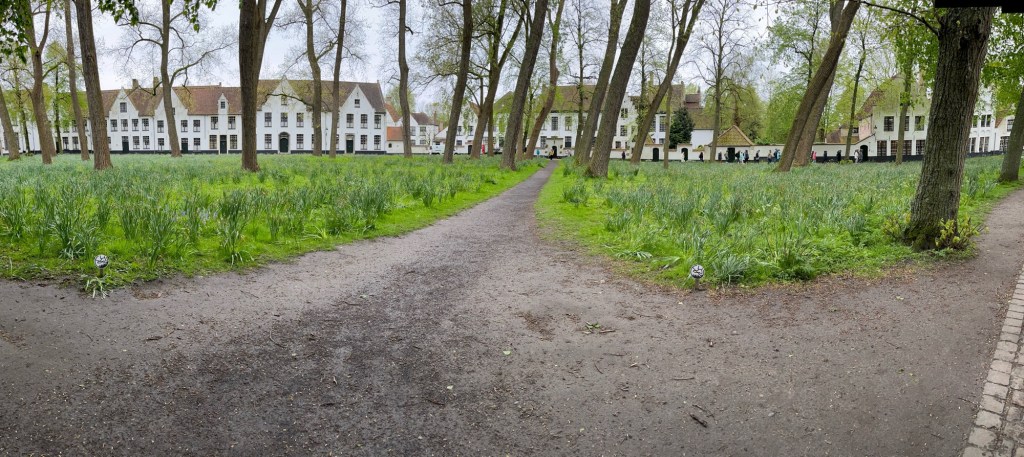 One of the points of interest in town was a Beguinage which was in the 13th century and still is a place where single women could live a pious life but not be tied to a life with the church. Many women lived and worked there during war years when few men were in town. It is an enclosed area inside the city.