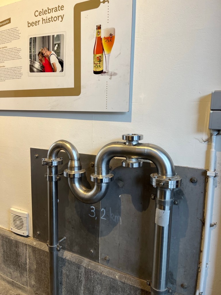 We walked through winding. streets and tiny alleys. We saw a beer producer who had installed a pipe to the outskirts of the city so that trucks didn’t need to navigate the crowded streets. When our guide gave us time to roam, I found an entrance lined with beer glasses and bottles that made me decide to test the product. Luckily, they had a choice of tastes. I decided on local beer. Other options were “strong” and “dark”.  It was fun to try 4 different ones. I was surprised that I actually preferred the heavier tasting local beers. Perhaps the cold weather was a factor. And luckily while we were inside, it poured rain. It has rained off and on every day!