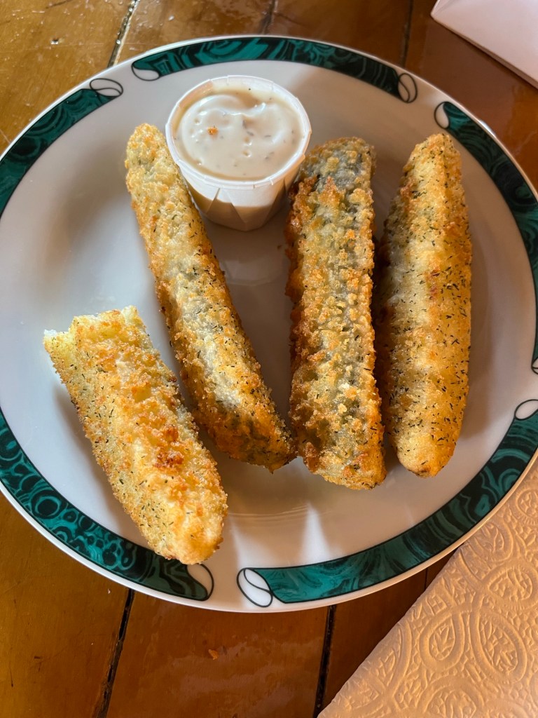 I came back into town to visit Dr Grenfell’s house and hike the trail above it. I decided to try out the local brewery which overlooks the harbor. The group should arrive around 3 pm. Fried pickles go well with beer.