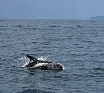 The wind is against us today so we aren’t going as fast as we did yesterday. Our intended destination is 75 miles away. We will have a long day. But..we saw whales and dolphins twice. Moya went back to the whales to get pictures. She said there were 4 or 5 fin whales. Photos from yesterday indicate that we saw a blue whale too. Mia has the outlines of all whales and fins so we could check. Pretty amazing.