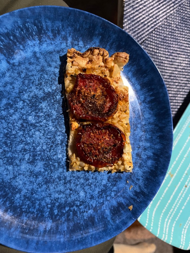 Birthday celebrations started with Pol Roger champagne and hard smoked salmon that Moya had been given in square island. In lieu of birthday cake, I requested a tomato tart which we were supposed to have made a few days ago. Birthday cake is not my thing.