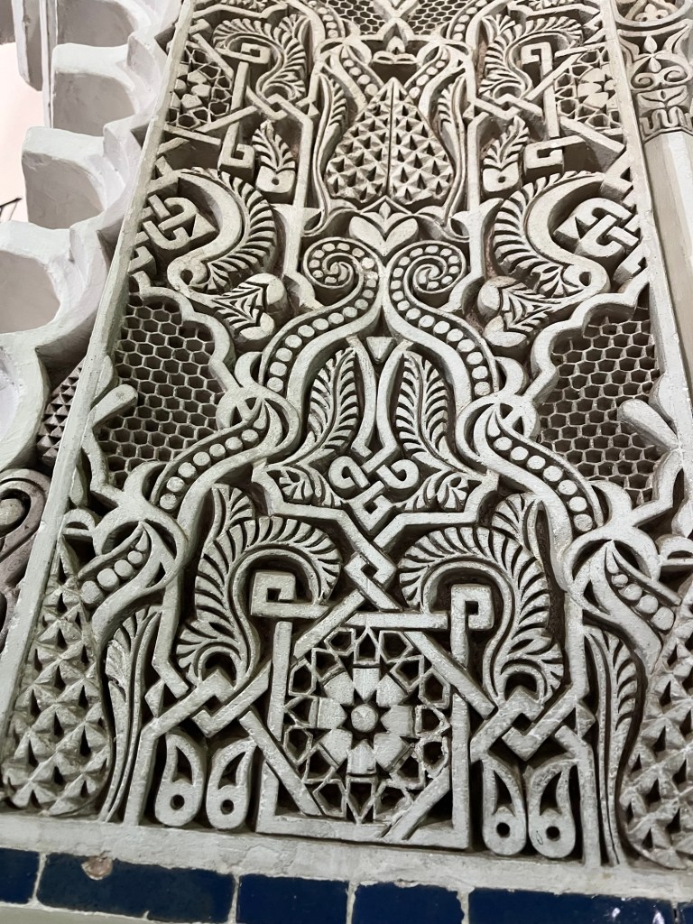 The last spot we visited was outside the kasbah and medina. It was a school for artisans that was built by the Spanish. There are 40 student in a four year program. Then learn how to create traditional designed and can pick from several mediums to do their work – ceramic/tile, brass/bronze, wood, plaster, etc. The workshops for each of the mediums were fascinating. We gained a great appreciation for what it takes to create these masterpiece works in the various mediums.