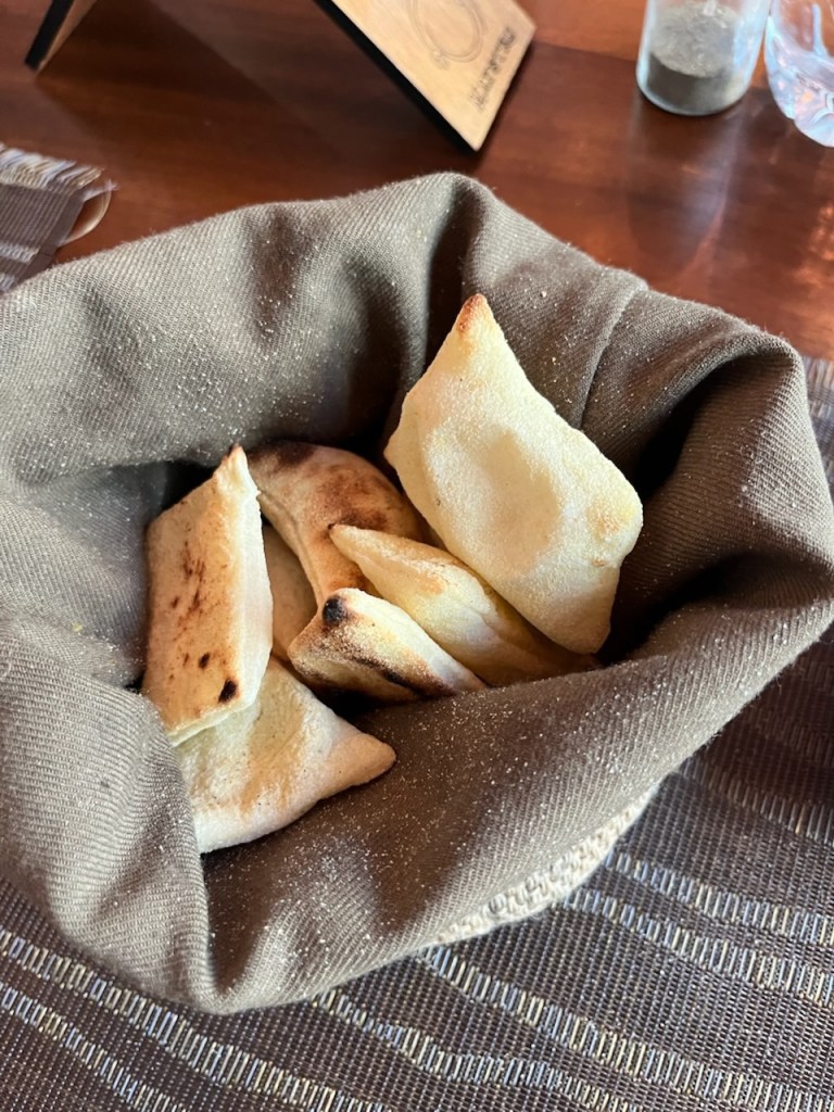 Our lunch spot was in the modern section of Meknes. We started with small puffs of pita bread that were served with 2 different eggplant dips and olive tapenade. We then had chicken kebabs and roasted vegetables. We finished with a very light dessert “jawhara” that is phyllo dough with whipped cream, rose water and honey.