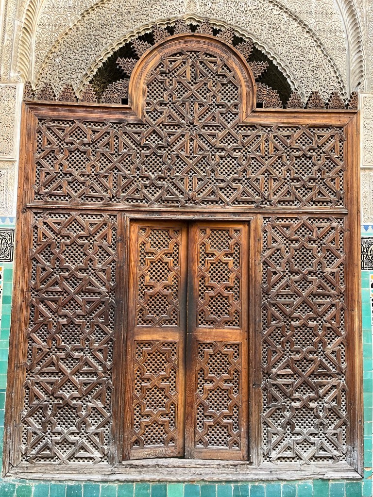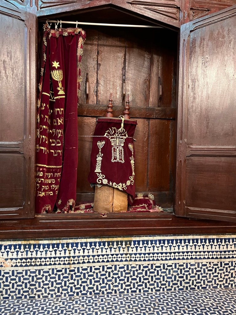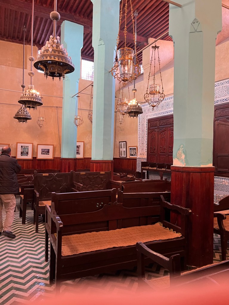 We had a leisurely start at 9 am this morning. We began our tour by visiting the outside of the royal palace and the mellah. The mellah is unusual because it has windows and balconies that face the street unlike typical houses in the old town that have blank walls facing the street and inner courtyards for light. We visited a synagogue that is now just a historical monument. The Torah is written on gazelle skin. Apparently many Jews left Morocco for Israel after World War II. Interestingly, since the Vichy French regime was in Morocco during the war, when Hitler asked for the Jews to be sent to Germany the king said all his people were Moroccan and he refused to send them. I have been very impressed at how integrated the religions are here in terms of tolerance. If only the world could be the same …