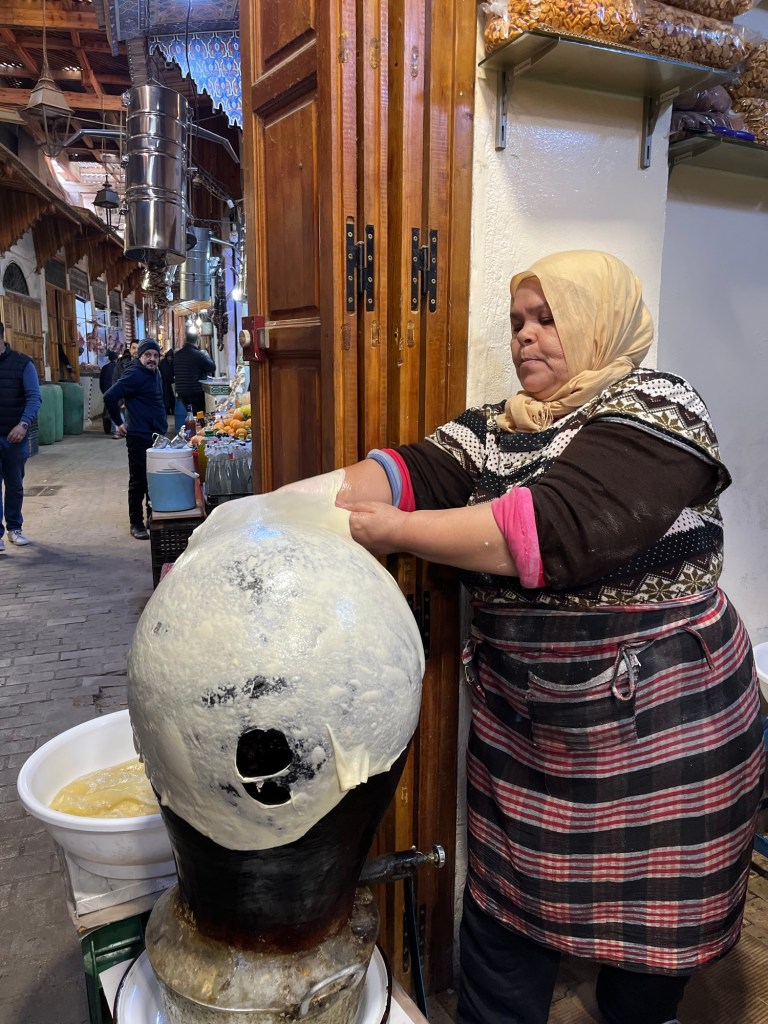 We viewed the university which is said to be the oldest one in the world. I haven’t fact checked that. We saw meats, olives, cloth dyeing, handmade phyllo being cooked, dresses, fabrics, spices, and just about anything you can want to buy as we wandered through the streets. Some streets that were only for inhabitants not shops were just barely wide enough for 2 people to pass each other.