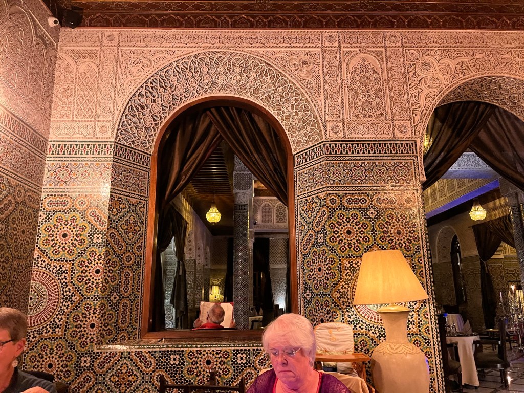 Our final evening together was a goodbye dinner in a beautiful old house that had been built by a French woman in the 1920s. We had cocktails in a side room and dinner in a beautiful dining room with 3 large tables. It was a great ending for all of us although I still have one more part of the trip left to go. It’s sad to be parting from new friends and Abdou who has been a fun and extremely knowledgeable trip leader.