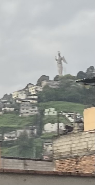 As we drove toward the hospital, we could see a statue on the top of the surrounding hills. It was the virgin of el Panecillo. It is the tallest statue in Ecuador and taller than the statue in Rio. The photo is blurry but Google has a nice one. We then passed a huge aerial bucket of KFC. It is immensely popular in the Caribbean and South America.