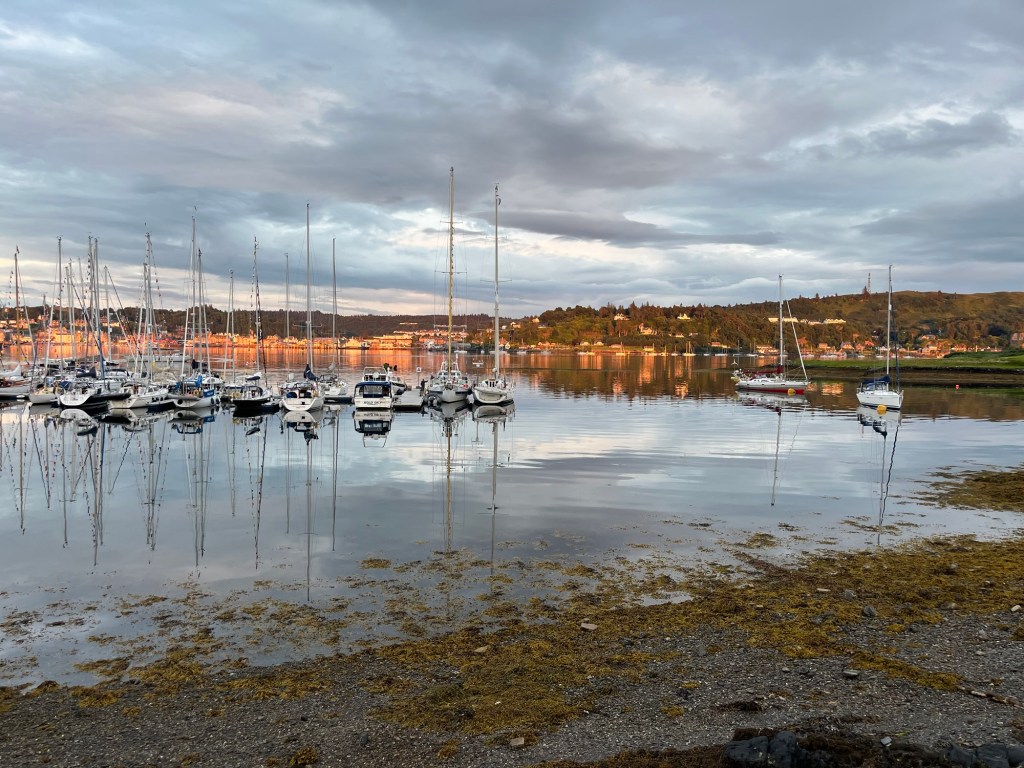 The sun finally began to set lighting up the harbor of Oban across from us. We walked back to our boats in semi twilight since it doesn’t really get dark here in summer.