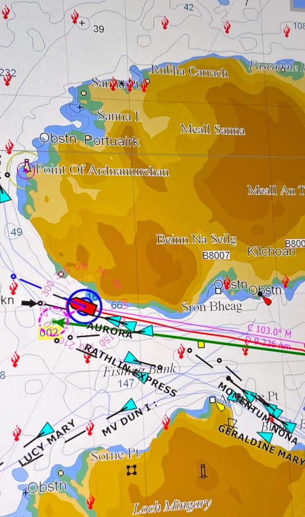 We left our anchorage this morning with an unsure destination because many of the potential ports can accommodate only a few boats. We had good wind and favorable current once we passed the point of Ardnamurchan. This point is an important milestone. For reasons that I don’t yet know, once you pass the point, you put Heather on the bow. We had picked Heather during our walk amongst the ferns a few days ago in anticipation of this event.