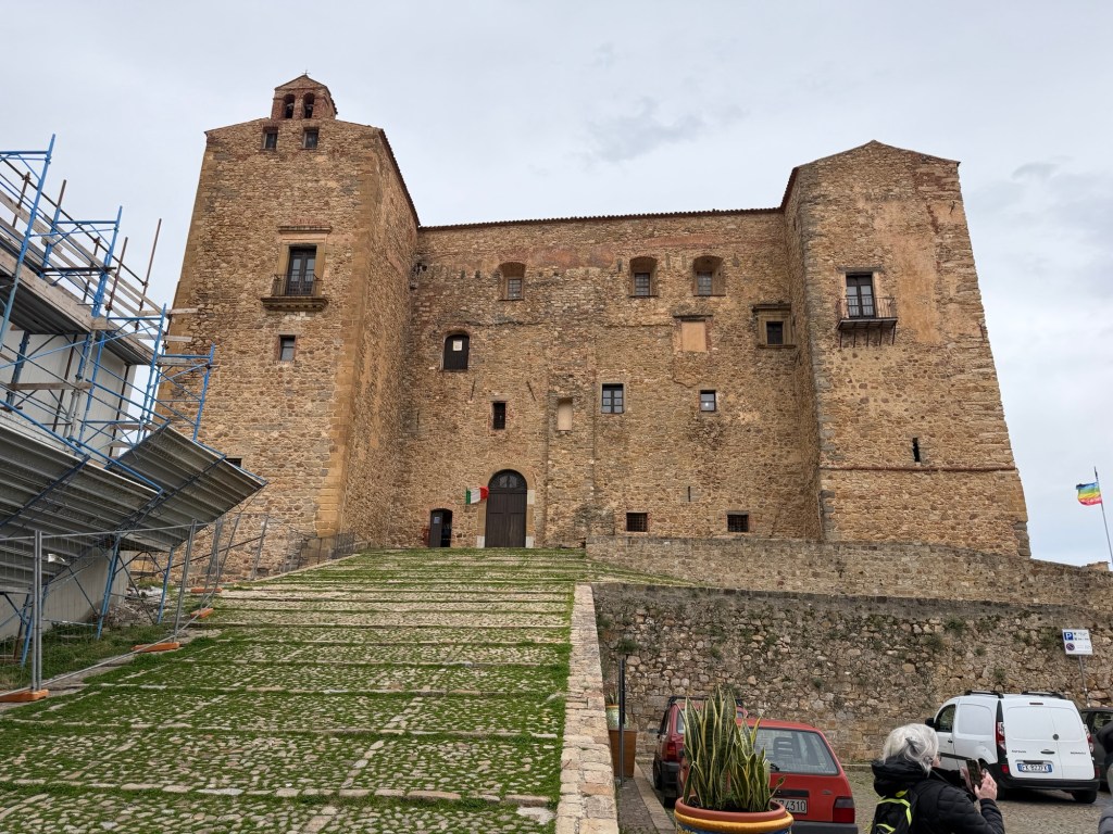 We left Palermo for Castelbuono which is a beautiful town in the hills overlooking the aeolian islands where I have sailed several years ago. We walked up to the castle in Castelbuono at the hilltop. As we walked the street, a man was in front of his house collecting things to take out for garbage. Andrea, our guide, stopped to talk with him translating for us and asking about how long he has lived there. It is very typical on these trips that the group leader has a spontaneous conversation with someone along the way. It is fascinating that people are friendly and open to responding.
