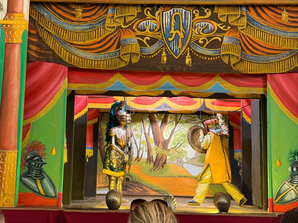 Puppet performances began in the early 1800s. Shows were first done in public squares where people would bring a seat to watch the story. It was the entertainment of the time for those who could not read. The theater inside was developed in later years. The popularity waned with the advent of TV.