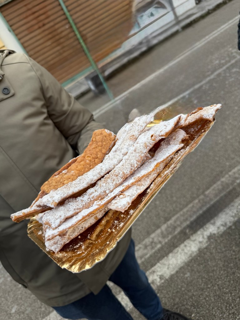 We returned to our bus after trying a snack of some fried dough covered with powdered sugar. It is made only during festival times. Our bus was deemed to be ok despite a malfunctioning middle door that didn’t close.