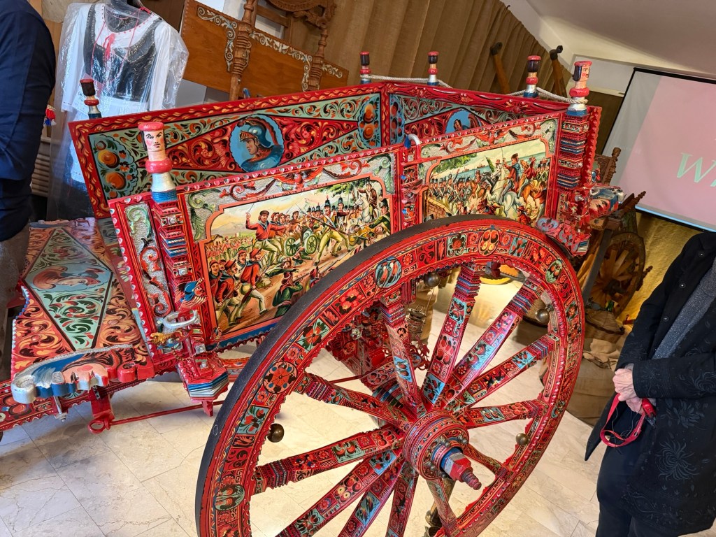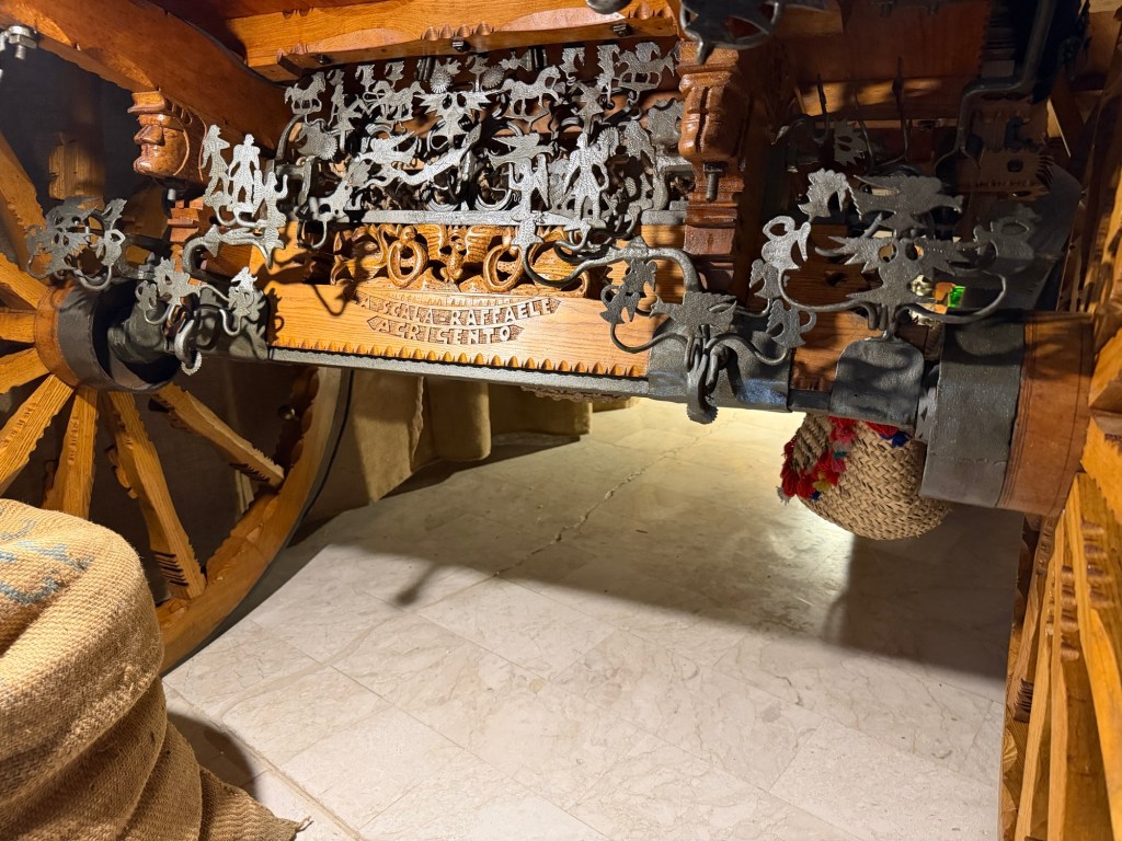 After lunch, we were brought downstairs to see a unique workshop. Marcelo’s father made carts for farmers to use both functional ones and fancy. The fancy ones are in his private museum space. They are works of art. We watched a short video about how his grandfather made a wooden wheel surrounded by metal. He was an amazing artisan.