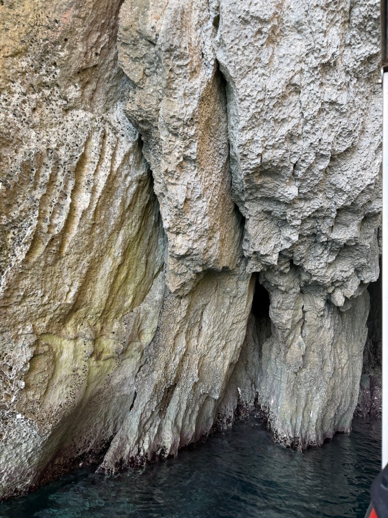 We rejoined our group to take a boat ride along the shoreline. We visited several caves along the way. There aren’t markers indicating shallows but the water is very clear and the rocks are visible above the water.