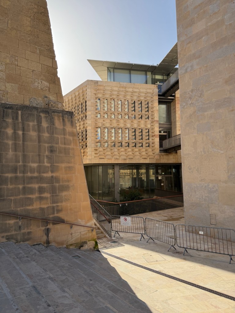 This afternoon after a quick lunch of pizza, we took a 3 hour walking tour of Valletta. Our guide was Maltese and she was extremely knowledgeable about the history of Malta and its many invaders. We enjoyed everything from the outside with reference to places to visit later. At one point we had a downpour followed by hail. Luckily we took cover in a walkway that was part of a food court. It didn’t last long.