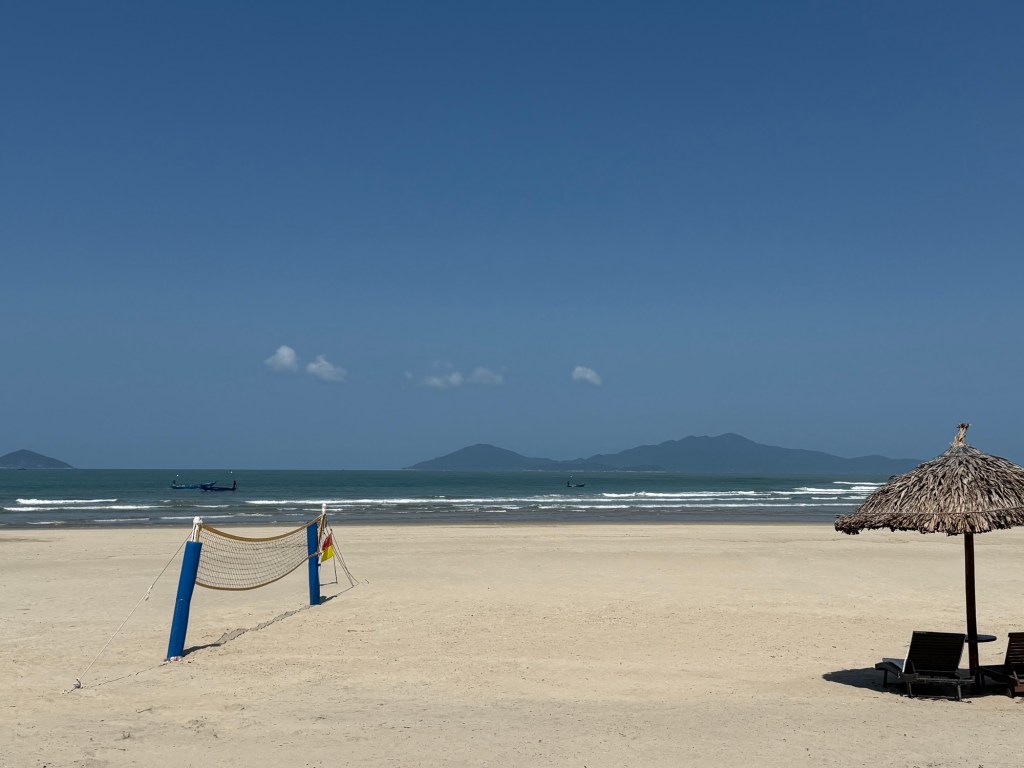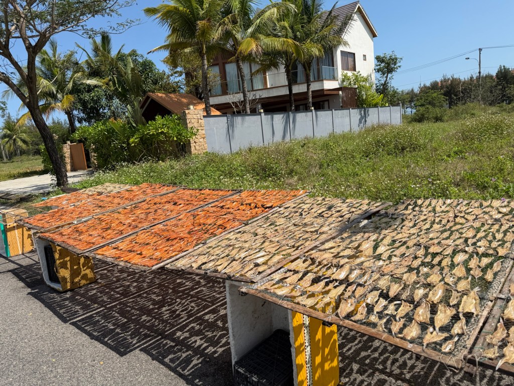 After breakfast, I decided to go for a bike ride. Our hotel is spread out along a peninsula that is all beach front on one side. I was pretty sure that we were almost at the end of the road. I started out toward the end and found out quickly that I was right. I was a bit concerned about dealing with traffic since there seems to be crazy behavior of cars and trucks but there were only occasional motor bikes passing me. I noticed a parallel path that seemed to be a bike path. I crossed over to it. I passed racks of drying fish. As I went further along I reached what appeared to be a fishing village. The paved path disappeared so I turned around. As I pedaled back towards the hotel, a young boy and his father caught up with me. They were riding a motorbike. They wanted to practice their English. We moved along at my pace for a while as we talked. They seemed very pleased to have a conversation. They thanked me and drove off. People here are very friendly.