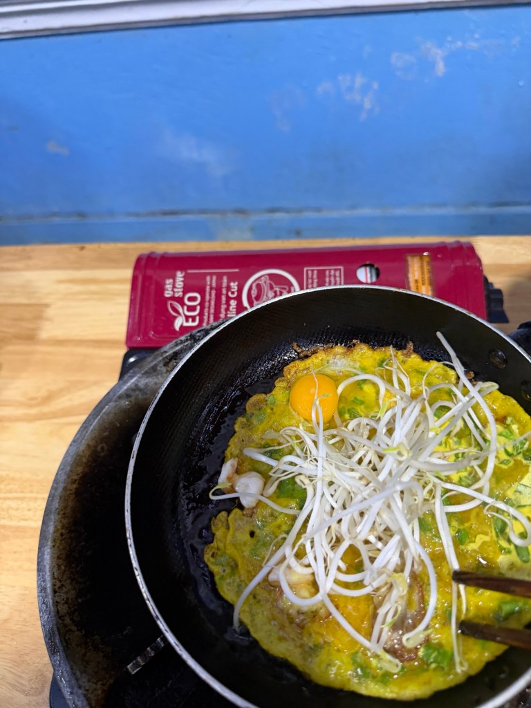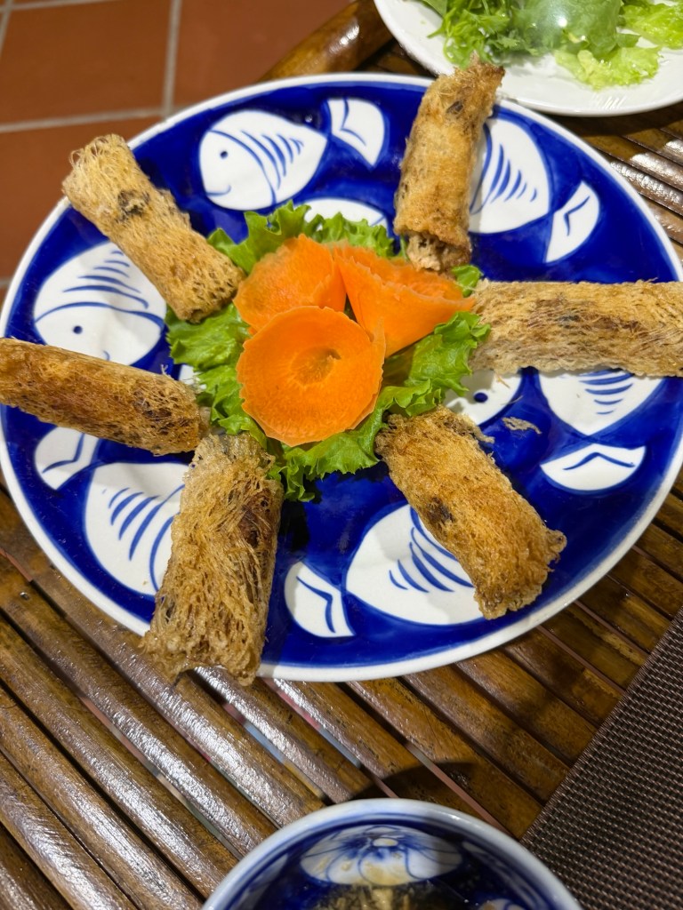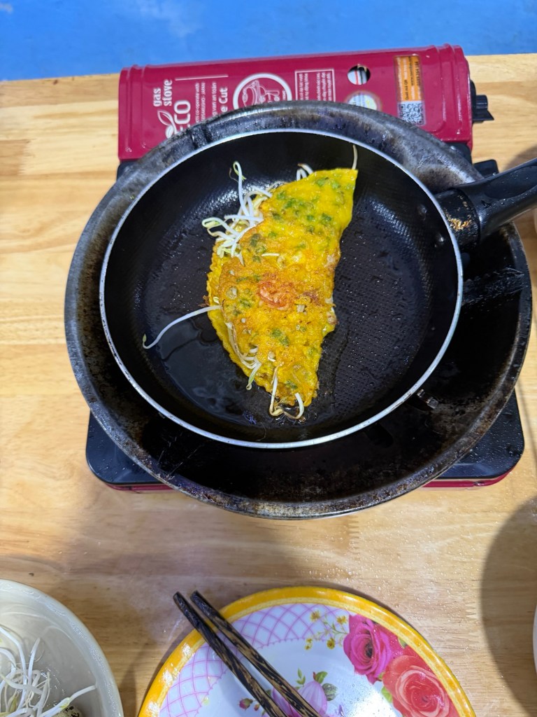 Eight people were set up for class. We made a variety of dishes and a sauce which was a sweet spicy one used for mixing with foods to be cooked as well as a dipping sauce. It seemed easy. We were given lots of prepped items that needed to be mixed. We also chopped things for rolled up rice pancakes and ground a few things into paste with a mortar and pestle. Then we cooked over small gas stoves like camp stoves. It all seemed very easy and was delicious in the end. The chef had prepared a broth for Pho which is pronounced like Fur. I have tried making the broth. It’s got a few spices I hadn’t added that make it much more flavorful than my attempt. I probably won’t make it but I have the recipe just in case.